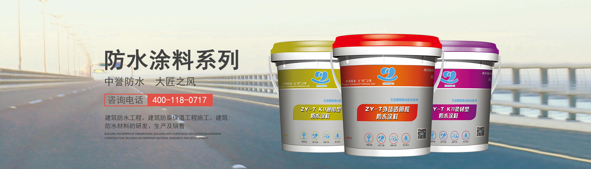 浙江中誉防水技术有限公司是一家集防水材料研发、制造、销售及施工服务于一体的技术创新型企业,多年以来公司本着以质量求生存,以信誉求发展,以科技求生存的宗旨为省内外众多国有企业、外资企业、民营企业、科技院校、酒店医院、住宅区、工业厂房建筑、民用商住建筑等提供优良的服务......